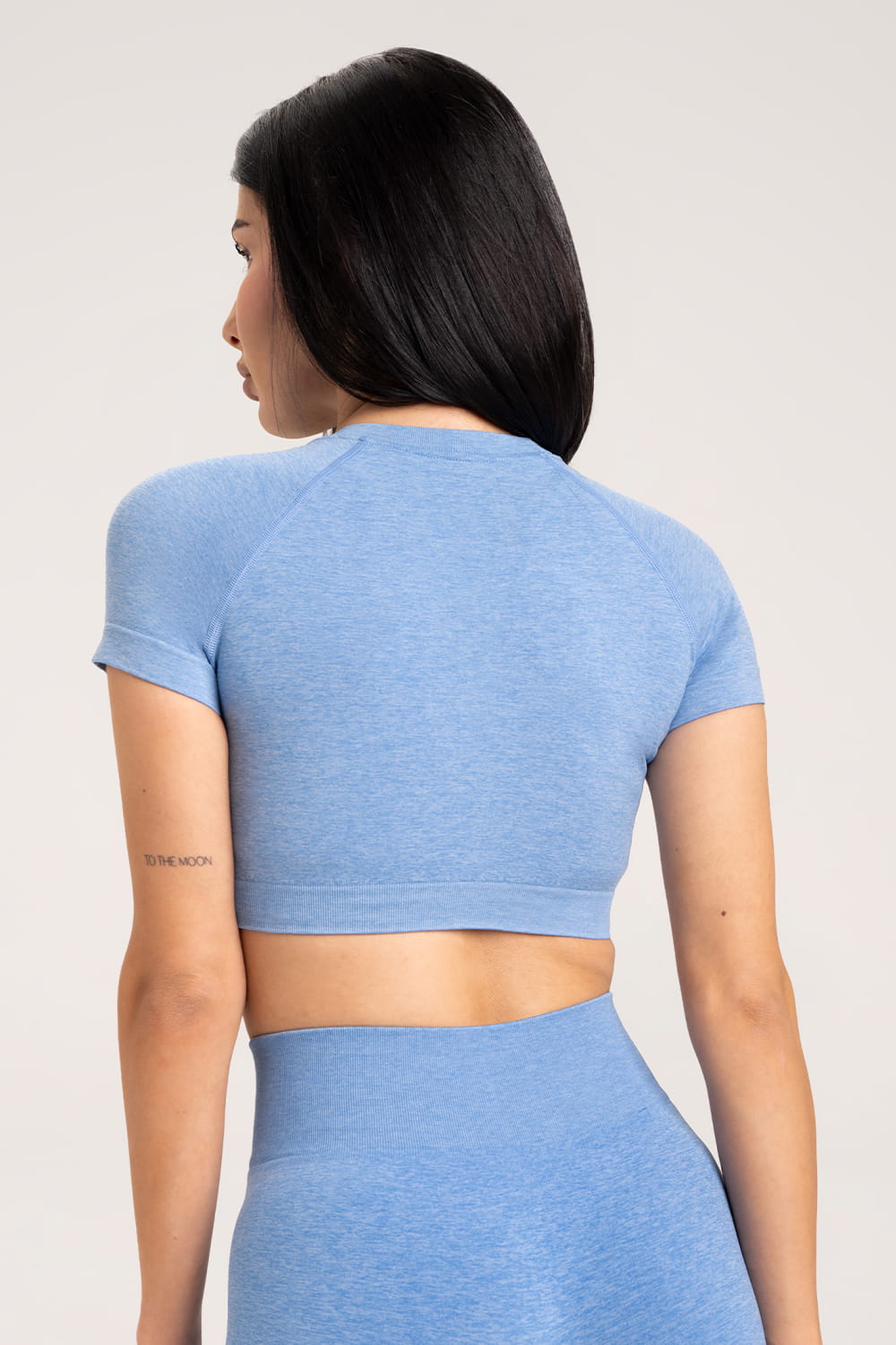 Nahtloser Rashguard in Himmelblau.