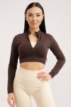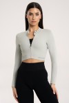 Kurze nahtlose Sportjacke mit Reißverschluss cream