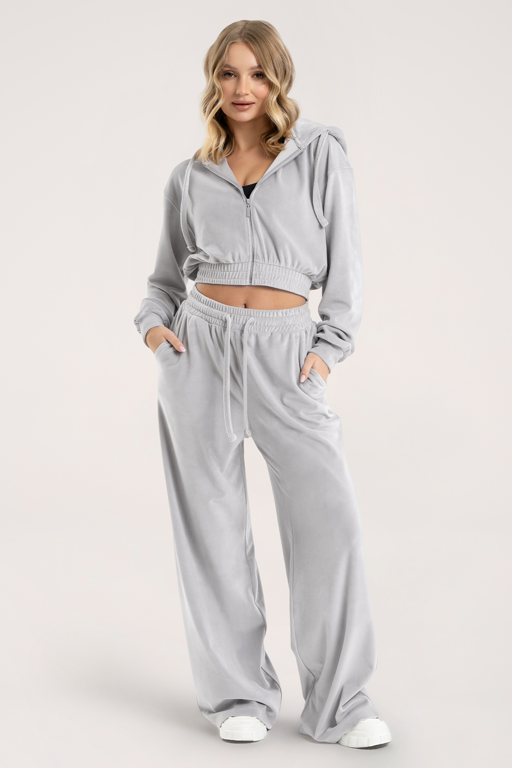 Lounge-Hose Velour light grey