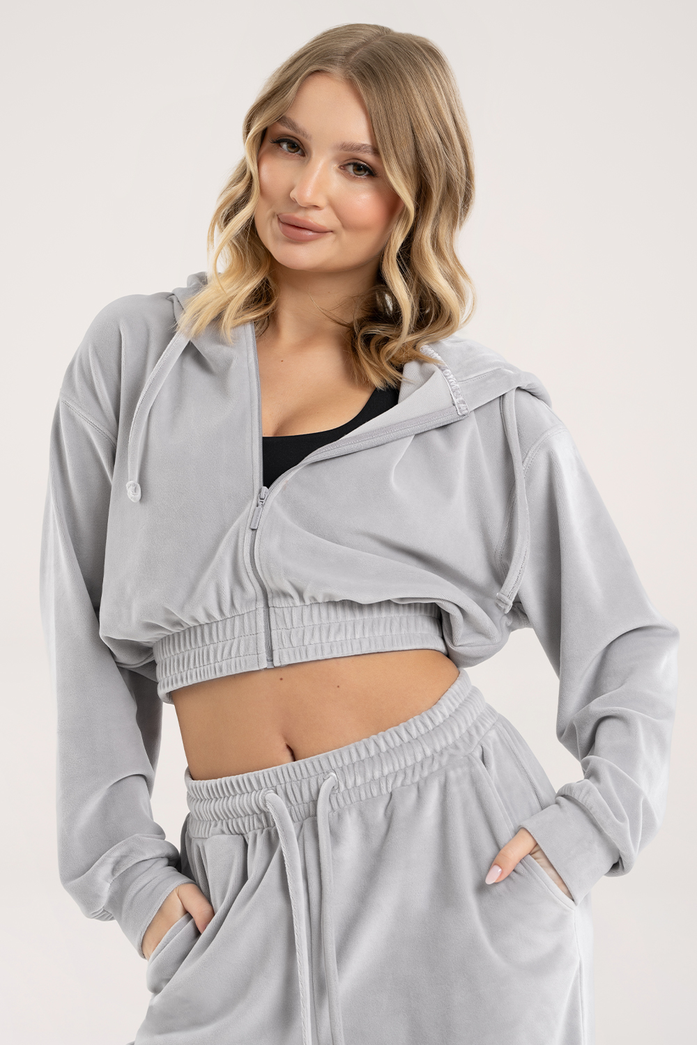 Lounge-Kapuzenjacke mit Reißverschluss Velour light grey