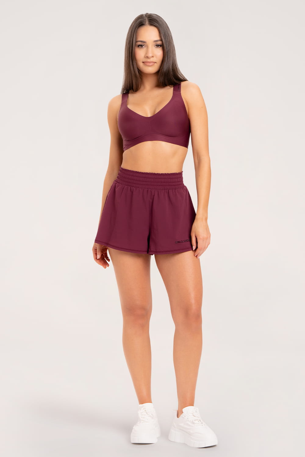 Doppellagige Shorts, die für Komfort und Stil sprechen. Die äußere, weite und leicht luftige Schicht sorgt für ein leichtes Tragegefühl, während die darunterliegende, taillierte Bikershorts – mit praktischer Handytasche – für volle Bewegungsfreiheit sorgt. Der elastische Bund und eine zusätzliche Schnürung sorgen für eine perfekte Anpassung der Shorts an die Figur. Abgerundet wird das Ganze durch ein dezentes, transparentes Logo mit zartem Glanz.
